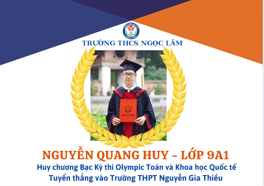 Nhắc đến tập thể lớp 9A1 khóa 2018-2022 trường THCS Ngọc Lâm, thì không thể không nhắc đến bạn Nguyễn Quang Huy – một ví dụ điển hình của “con nhà người ta” trong học tập và rèn luyện. Sinh ra trong một gia đình có truyền thống hiếu học với bố là kỹ sư, mẹ là giáo viên môn Ngữ Văn, trong 9 năm cắp sách đến trường, Quang Huy luôn đạt Danh hiệu Học sinh Giỏi ở tất cả các môn với điểm tổng kết cuối năm 9,6. Trong đó, thành tích nổi bật của Quang Huy chính là môn Toán và Tiếng Anh.