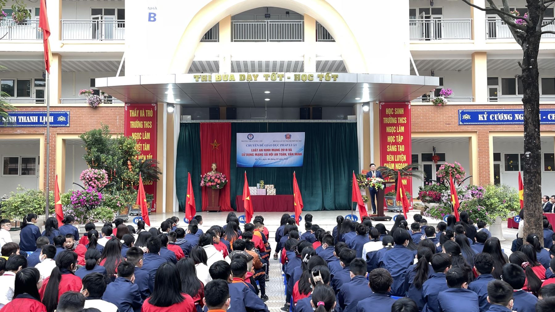 Cùng toàn thể các đồng chí giáo viên, nhân viên trong hội đồng sư phạm nhà trường và hơn 1300 em học sinh tham dự.