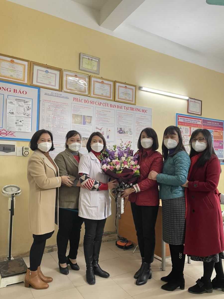 Sáng ngày 25/02/2022, nhân dịp Kỉ niệm 67 năm Ngày Thầy thuốc Việt Nam (27/02/1955 - 27/02/2022), Ban giám hiệu trường THCS Ngọc Lâm và đại diện Công đoàn đã gửi những lời chúc tốt đẹp nhất và tặng bó hoa tươi thắm tới đồng chí Phạm Thu Thủy - nhân viên y tế của nhà trường và các cán bộ y tế của Trạm y tế phường Bồ Đề.