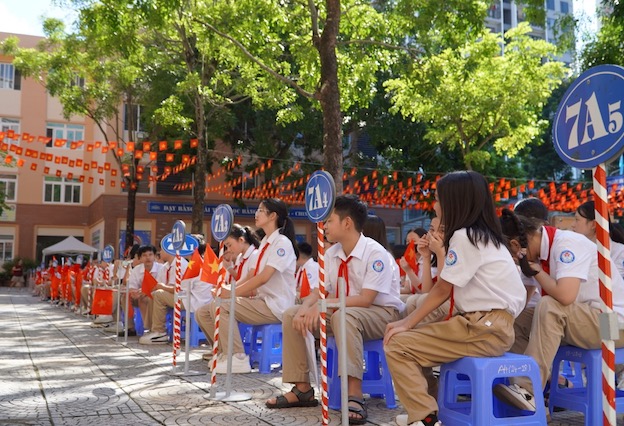 Học sinh Trường Tiểu học Đoàn Kết (phường Long Biên, Hà Nội) sáng 4.9. Ảnh: Nhà trường cung cấp Cũng trong sáng nay, Trường THCS&THPT Lương Thế Vinh (Hà Nội) tổ chức tổng duyệt toàn bộ chương trình nhằm đảm bảo sự chỉn chu về nội dung, âm thanh-hình ảnh và các khâu hậu cần.