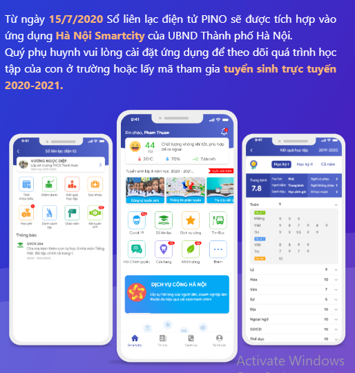 Ngoài việc theo dõi về kết quả học tập của học sinh trên SLLĐT, phụ huynh học sinh còn có thể lấy tài khoản đăng ký tuyển sinh từ app Smartcity. Để sử dụng các tính năng của Sổ liên lạc điện tử trên Smartcity, phụ huynh học sinh cần đăng ký tài khoản Smartcity và thực hiện liên kết tài khoản Smartcity của mình với tài khoản học sinh.