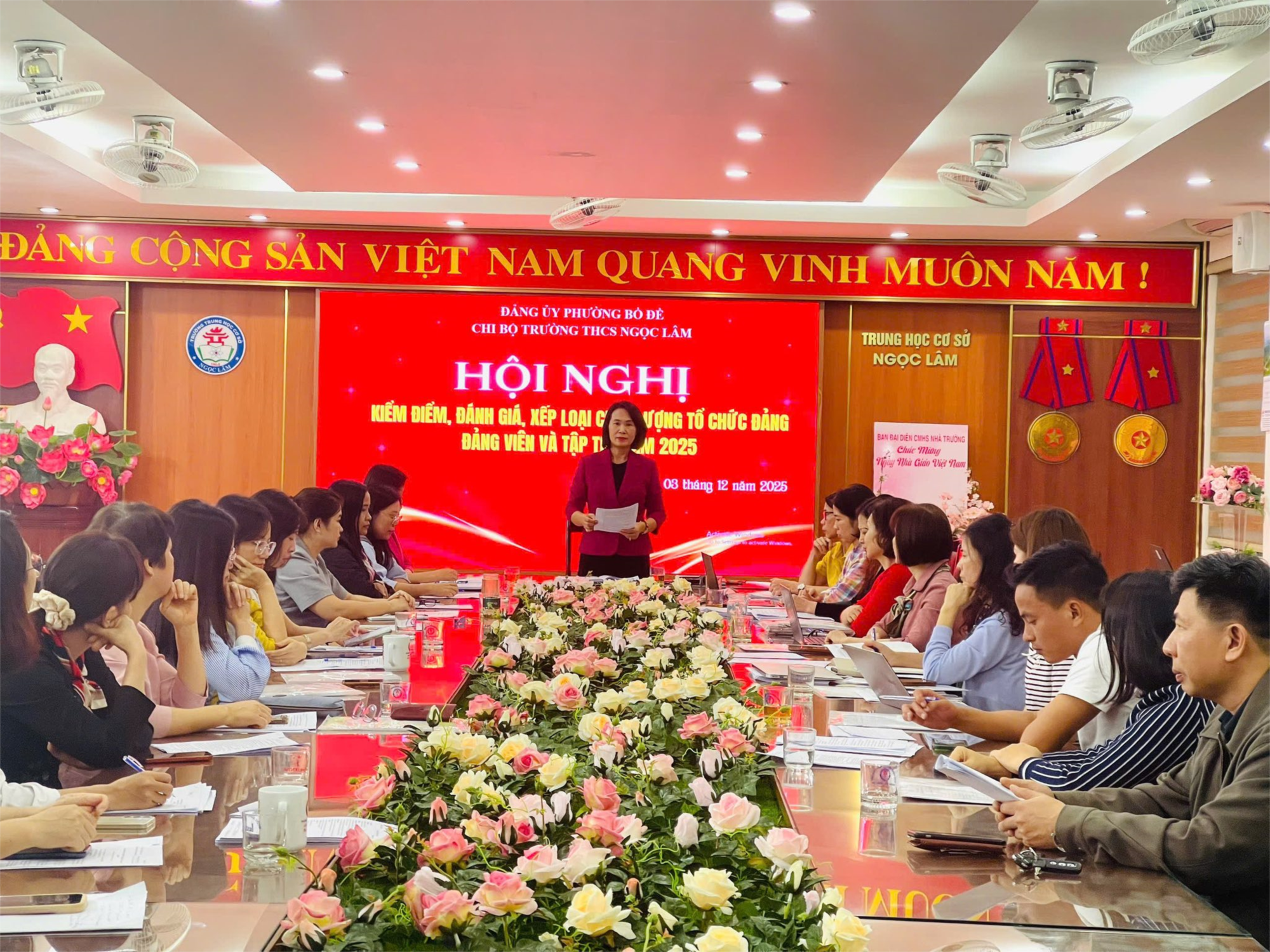 Hội nghị kiểm điểm, đánh giá, xếp loại đảng viên năm 2025 đã thành công tốt đẹp. Hội nghị thực sự trở thành đợt sinh hoạt chính trị sâu sắc, là dịp để mỗi Đảng viên Chi bộ Trường THCS Ngọc Lâm tự soi, tự sửa, củng cố thêm niềm tin và ý chí phấn đấu. Thông qua việc đánh giá này, Chi bộ đã xác định rõ phương hướng lãnh đạo cho năm tiếp theo, kiên định mục tiêu xây dựng Chi bộ đạt danh hiệu "Trong sạch, Vững mạnh tiêu biểu," tiếp tục phát huy vai trò tiên phong của người cộng sản trong sự nghiệp giáo dục, góp phần vào sự phát triển bền vững của ngành Giáo dục Thủ đô.