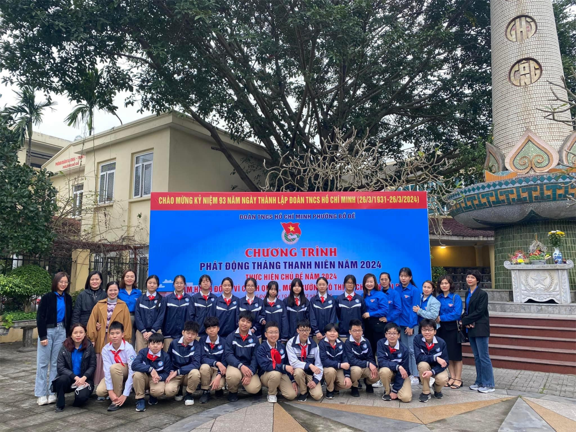 Tháng thanh niên năm 2024 đặc biệt ý nghĩa đối với mỗi chúng ta khi đánh dấu chặng đường 93 năm vẻ vang của tổ chức Đoàn TNCS Hồ Chí Minh. Đặc biệt năm 2024 còn là năm thực hiện chủ đề năm của Quận: Năm hành động vì cảnh quan môi trường đô thị và chuyển đổi số với chủ đề “ Tuổi trẻ Bồ Đề xung kích - tình nguyện vì cuộc sống cộng Đồng”. Sáng ngày 10/3/2024, Chi đoàn trường THCS Ngọc Lâm phối hợp cùng Đoàn phường Bồ Đề và các Chi đoàn cơ sở THPT Vạn Xuân, trường Tiểu học Ngọc Lâm... tham dự lễ phát động hưởng ứng tháng Thanh niên 2024 tại nghĩa trang liệt sĩ phường Bồ Đề.