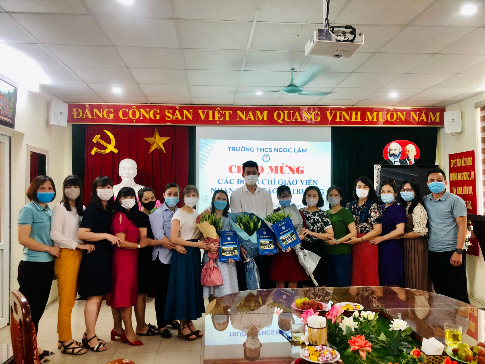Ban liên tịch thay mặt hội đồng sư phạm nhà trường tặng hoa chúc mừng các thầy cô giáo nhận công tác tại trường THCS Ngọc Lâm, chúc thầy cô luôn luôn mạnh khỏe, công tác tốt và cống hiến trong sự nghiệp giáo dục trồng người.