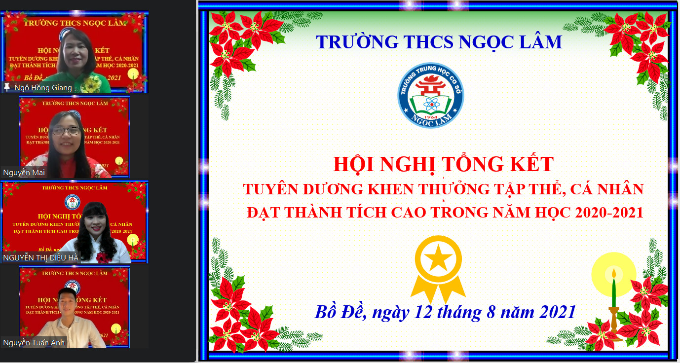 . trường THCS Ngọc Lâm tổ chức Hội nghị tổng kết tuyên dương khen thưởng tập thể, cá nhân đạt thành tích cao trong năm học 2020-2021.
