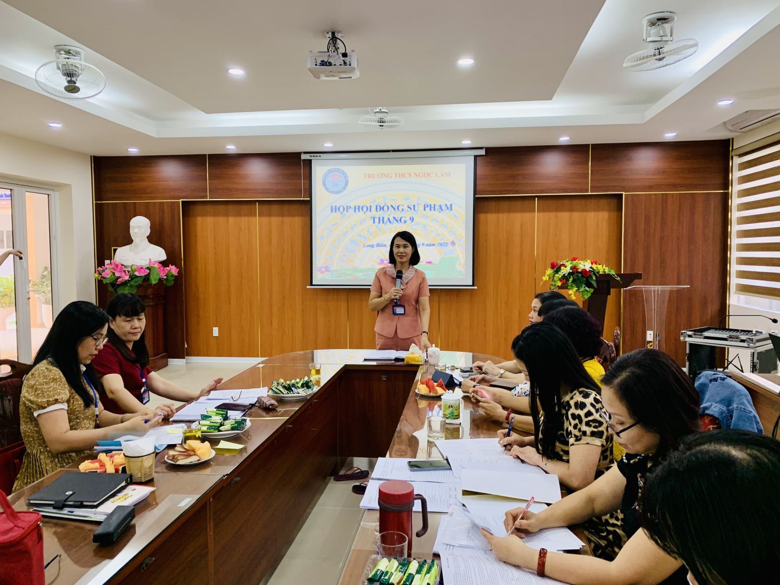 Tiếp theo, căn cứ vào các chỉ thị, công văn hướng dẫn của các cấp, các ngành, phòng giáo dục quận Long Biên nói chung và trường THCS Ngọc Lâm nói riêng, đồng chí Hiệu trưởng triển khai nhiệm vụ trọng tâm công tác tháng 9 với những nhiệm vụ trọng tâm: