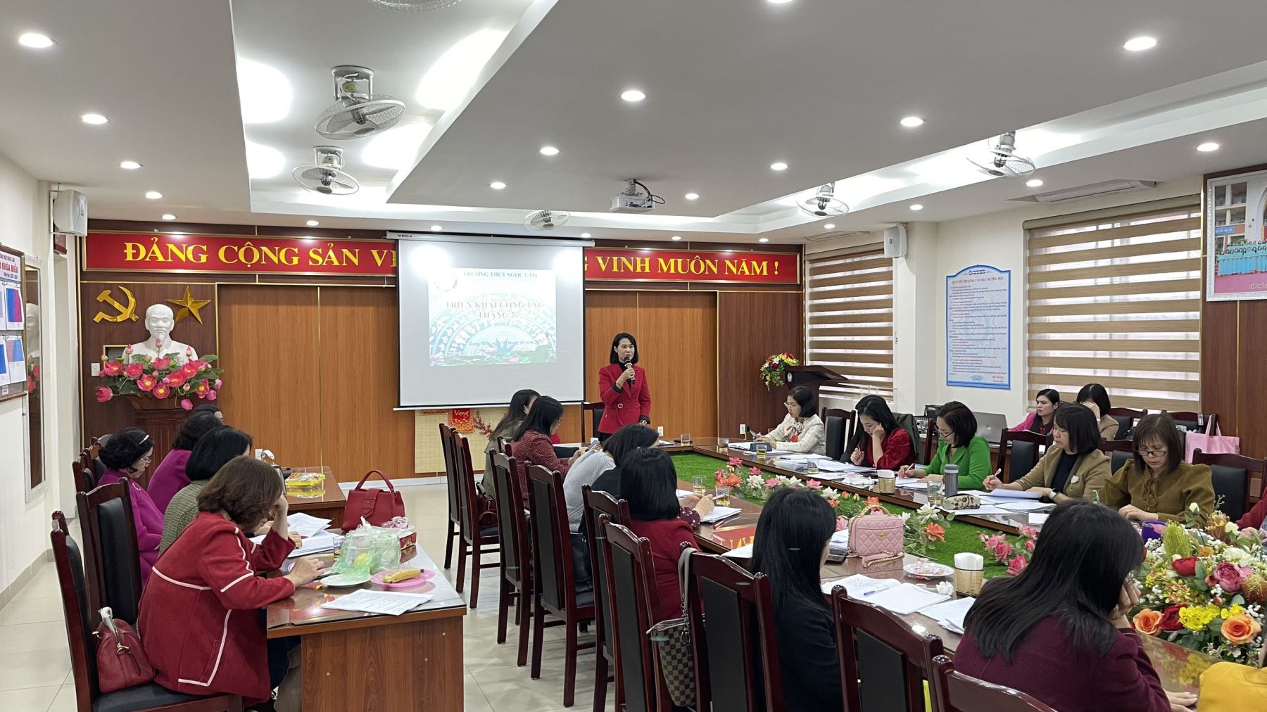 Phát biểu chỉ đạo tại cuộc họp, nhà giáo Ngô Hồng Giang - bí thư Chi bộ - hiệu trưởng nhà trường biểu dương những nỗ lực của tập thể nhà trường, đặc biệt là trân trọng cảm ơn sự tận tâm của các thầy cô và biểu dương sự nỗ lực của toàn bộ học sinh khối 9 và công tác công đoàn và triển khai kế hoạch công tác tháng 2, chuẩn bị cho chương trình HKII với các nội dung chính như: