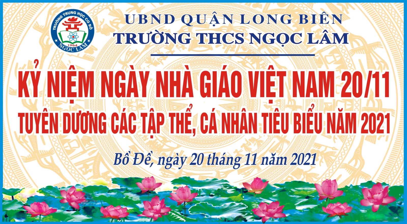 , được sự đồng ý của các cấp lãnh đạo: UBND quận Long Biên, Phòng GD&ĐT quận Long Biên ; Đảng ủy phường Bồ Đề, trường THCS Ngọc Lâm long trọng tổ chức lễ kỉ niệm 39 năm ngày nhà giáo Việt Nam 20/11 dưới hình thức trực tiếp và trực tuyến.