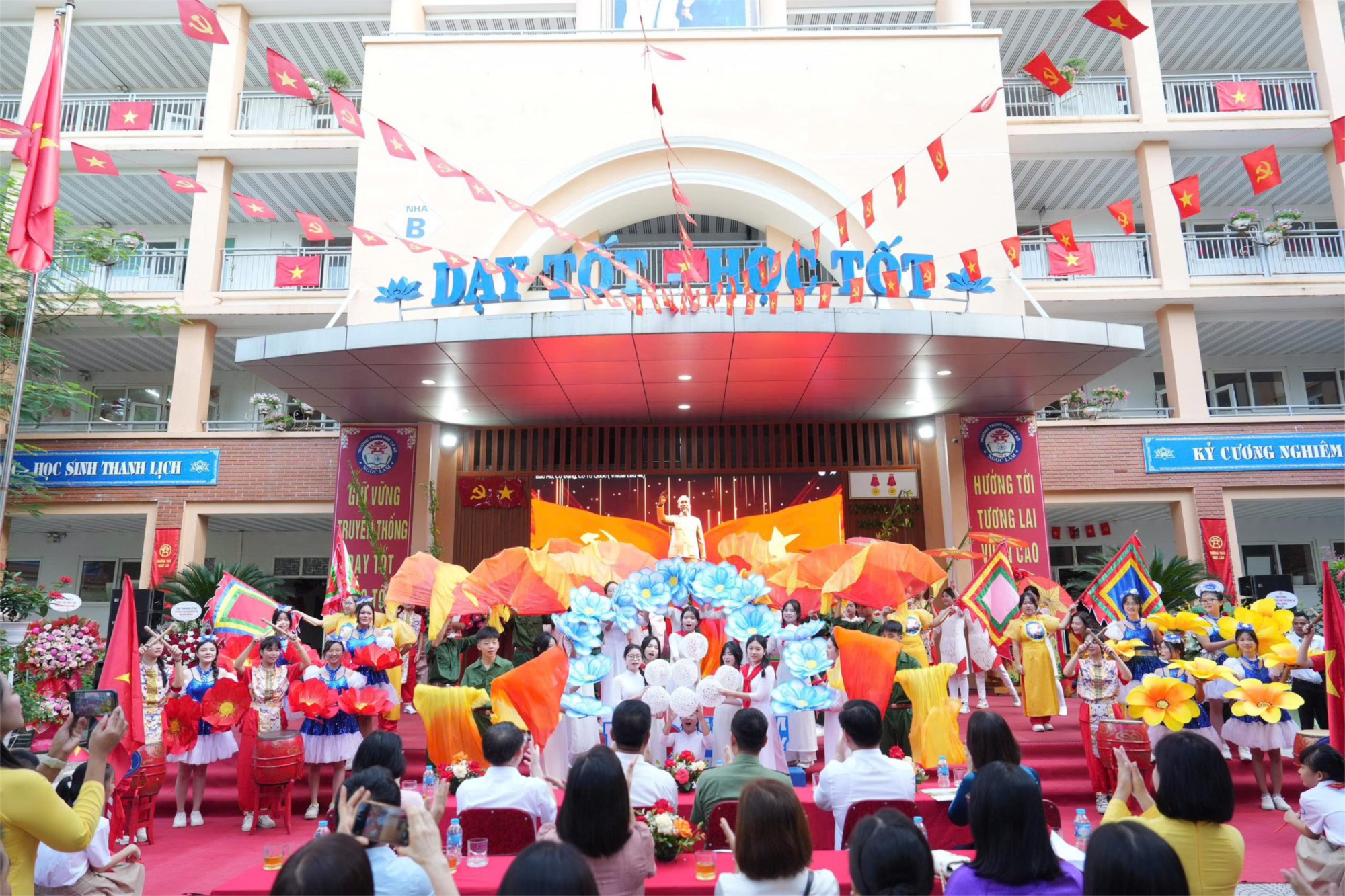 Mở đầu là chương trình văn nghệ đem đến không khí sôi động, háo hức của ngày khai trường. Các em học sinh tài năng của ngôi nhà Ngọc Lâm đã mang đến những tiết mục văn nghệ vô cùng đặc sắc. Những điệu múa uyển chuyển, những bài hát ca ngợi quê hương đất nước và mái trường thân yêu đã tạo nên một không gian tươi vui, tràn đầy cảm xúc. Đây cũng là dịp để các em học sinh thể hiện tài năng của mình và chào mừng các bạn học sinh khối 6 vừa gia nhập ngôi nhà chung.