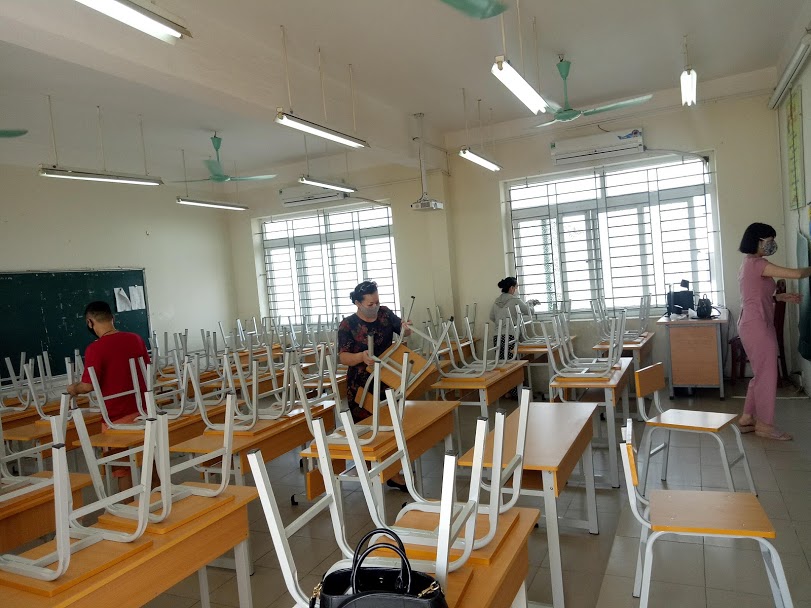 Chủ động trong công tác đón HS trở lại trường, BGH nhà trường đã tổ chức họp hội đồng sư phạm để triển khai kế hoạch đi học trở lại của HS các khối và phân công nhiệm vụ đến từng cán bộ, giáo viên, nhân viên nhà trường về việc tổng vệ sinh toàn bộ khuôn viên nhà trường trước ngày HS trở lại học. Mặc dù vẫn trong thời gian nghỉ lễ 30/4 -1/5 nhưng không khí dọn dẹp, tổng vệ sinh trường lớp diễn ra rất phấn khởi. Cùng với sự giúp sức của Ban phụ huynh các lớp và giáo viên trong nhà trường không chỉ bàn ghế, phòng học mà toàn bộ các vật dụng liên quan, khuôn viên công cộng trong nhà trường đều đã được lau chùi bằng dung dịch sát khuẩn và quét dọn sạch sẽ.