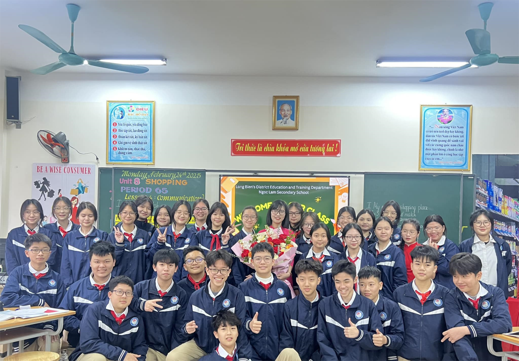 Cô Quỳnh Anh cùng với các em học sinh lớp 8A2 của trường THCS Ngọc Lâm