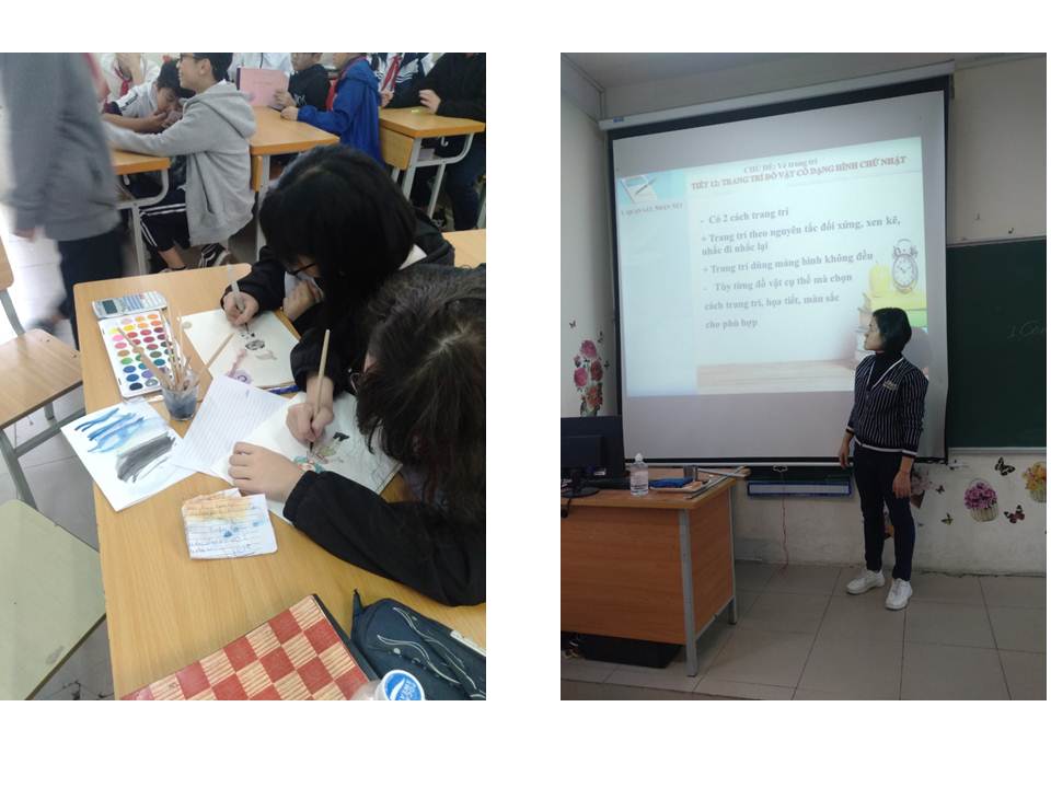Thực hiện kế hoạch hoạt động chuyên môn của nhà trường năm học 2020 - 2021, sáng ngày 12/11/2020, vào tiết 4, tổ Anh Năng khiếu trường THCS Ngọc Lâm tổ chức tiết dạy chuyên đề môn Mĩ thuật lớp 7 tại lớp 7A3 với nội dung “ Trang trí đồ vật có dạng hình chữ nhật” dưới sự thực hiện của cô giáo Vũ Hương Giang