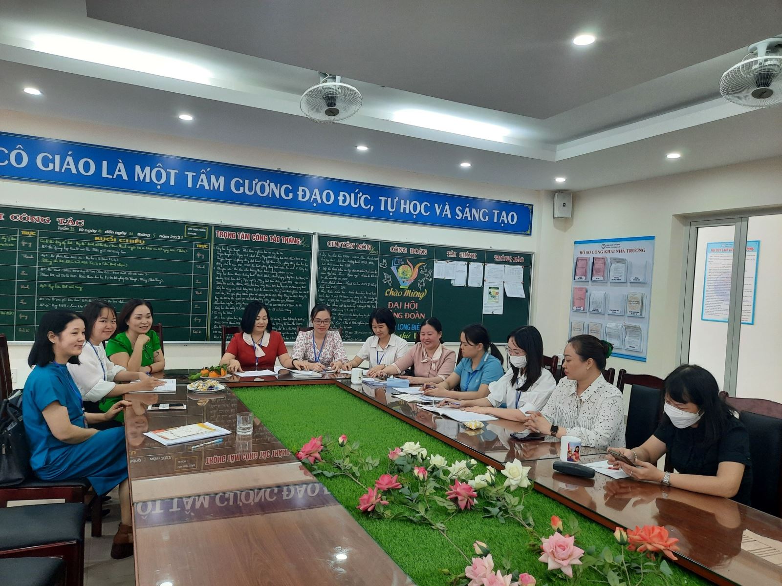 Phần thứ hai, sau phần trình bày của đồng chí Hoa, các đồng chí trong tổ nhóm cùng nhau thảo luận, chia sẻ và đóng góp để tìm ra những nội dung, cách thức phù hợp với đối tượng học sinh. Trong đó, đồng chí Nguyễn Thị Kim Giang nhất trí cao với nội dung chuyên đề của đồng chí Tống Thị Hoa. Đồng thời đồng chí cũng chia sẻ, nên chia thành các đề nhỏ và yêu cầu học sinh luyện tập viết đoạn văn trước ở nhà, giáo viên chữa trên lớp sẽ tiết kiệm thời gian.