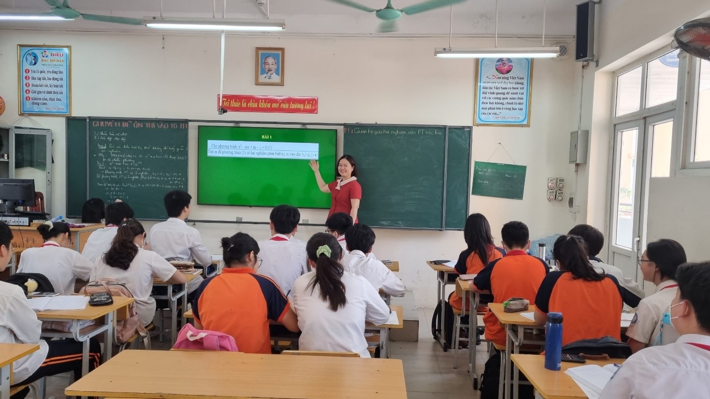 Đến dự chuyên đề có các thầy cô trong Ban Giám hiệu nhà trường và toàn thể giáo viên tổ Toán – Tin – Công nghệ. Thực hiện các tiết chuyên đề là các cô giáo Nguyễn Thị Hanh và Nguyễn Thị Hồng Hà, đây là hai trong số 7 cô giáo dạy toán lớp 9 trong năm học 2022-2023: tâm huyết với nghề , vững vàng chuyên môn nghiệp vụ. Các cô đã mạnh dạn đổi mới phương pháp giảng dạy để thực hiện tiết chuyên đề ôn thi vào lớp 10 THPT có chất lượng. Mỗi giáo viên đều lựa chọn một đơn vị kiến thức trọng tâm để ôn tập cho học sinh. Đó là các tiết chuyên đề “Giải bài toán bằng cách lập phương trình – dạng toán chuyển động” của cô giáo Nguyễn Thị Hanh tại lớp 9A6 và chuyên đề “Mối quan hệ giữa hai nghiệm của phương trình bậc hai” của cô giáo Nguyễn Thị Hồng Hà tại lớp 9A3. Hai cô giáo đã chủ động thiết kế những hoạt động củng cố lại kiến thức đã học về dạng toán và vận dụng từng phân kiến thức, qua đó học sinh thực hiện nhiều hoạt động cá nhân, hoạt động nhóm vận dụng kiến thức theo các mức độ từ nhận biết, thông hiểu đến vận dụng, vận dụng cao tương ứng bài cho trong đề thi tuyển sinh lớp 10 THPT . Tiết học đã thể hiện rõ sự nhiệt huyết, tân tâm của các cô giáo, sự hào hứng, tự tin, làm chủ kiến thức của các em học sinh.