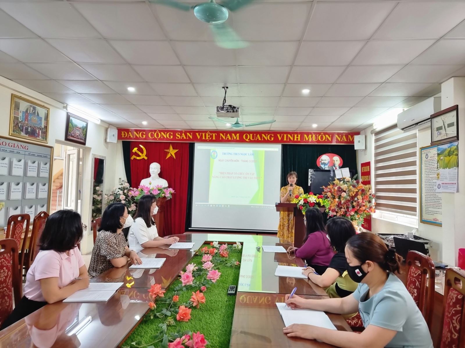 Trong hoạt động “ Ngày chuyên môn” của tháng 3, nhóm Toán 9 của nhà trường đã thực hiện buổi trao đổi nhận định rõ thực trạng về tình hình chất lượng của học sinh khối 9 năm học này. Nhóm chuyên môn đã phân tích chỉ rõ của ưu điểm – tồn tại và đề xuất các giải pháp cụ thể hữu ích như: