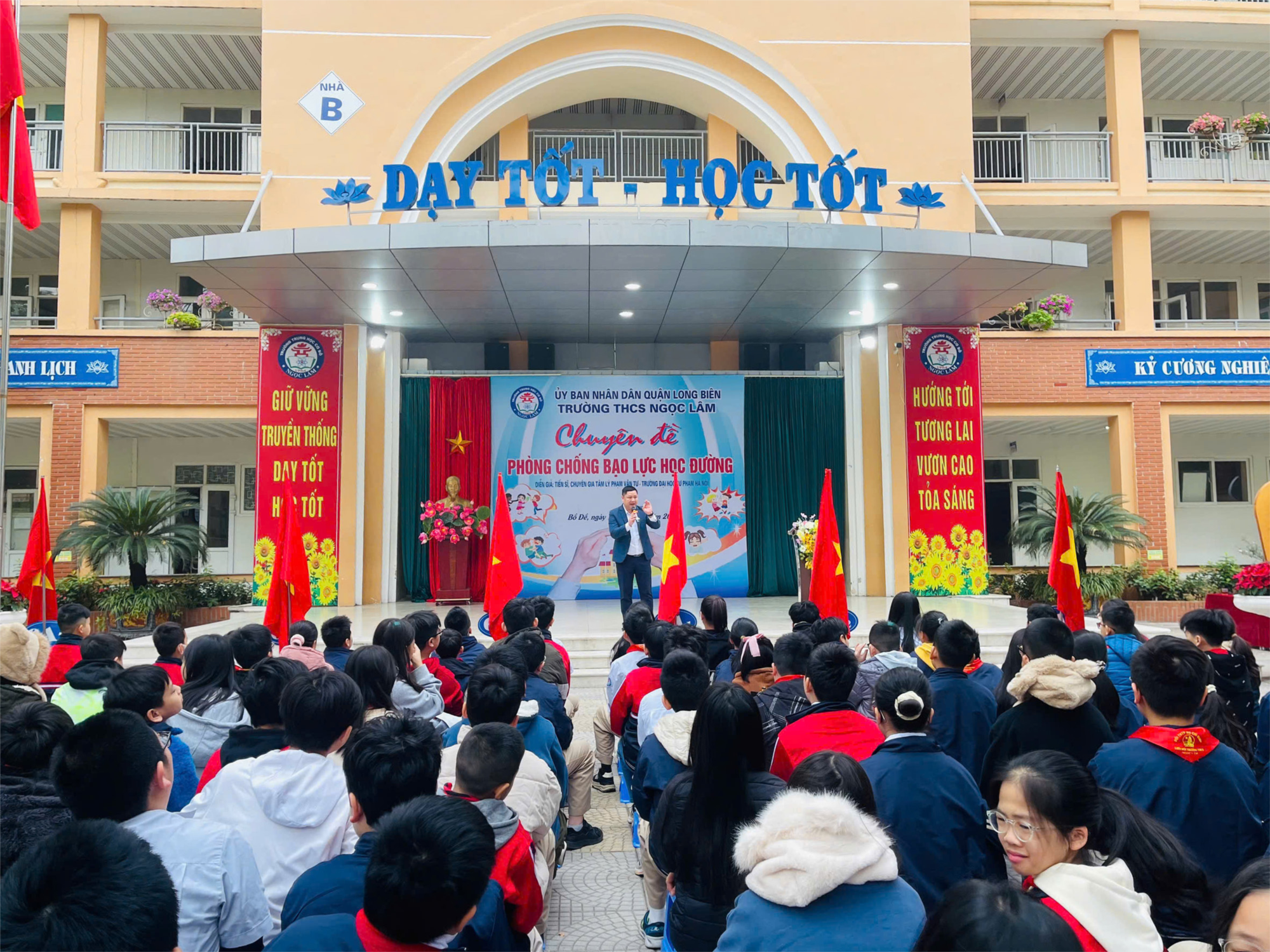 Với mong muốn giáo dục kỹ năng sống cũng như nhận thức về vấn đề nhiều trăn trở này, sáng ngày 16/12/2024, trường THCS Ngọc Lâm đã mời Tiến sĩ Phạm Văn Tư- Giảng viên khoa Tâm lí trường Đại học Sư phạm Hà Nội trò chuyện, tuyên truyền, giáo dục kỹ năng phòng, chống bạo lực học đường cho hơn 1300 em học sinh nhà trường.
