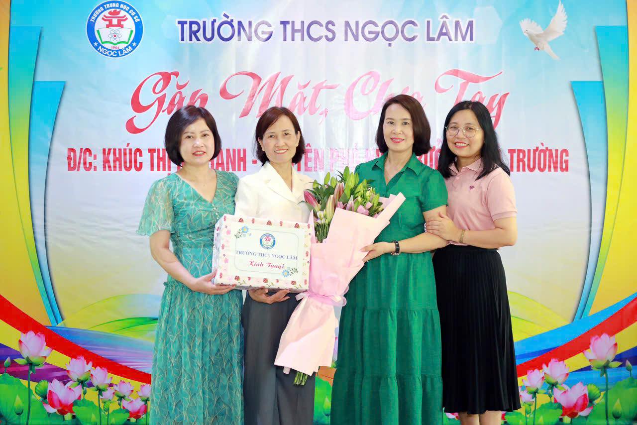 Đại diện cho toàn thể hội đồng sư phạm nhà trường, nhà giáo ưu tú Ngô Hồng Giang- Bí thư chi bộ, Hiệu trưởng nhà trường đã có lời tâm sự chia sẻ. Mặc dù thời gian công tác tại nhà trường chưa phải dài (tháng 3/2023- tháng 3/2025), Nhà giáo Khúc Thị Mỹ Hạnh luôn nỗ lực hoàn thành nhiệm vụ, công tác được giao; nhà giáo đã có những đóng góp, tham mưu trong hoạt động Kỉ niệm 60 năm ngày thành lập trường THCS Ngọc Lâm. Nhà giáo Khúc Thị Mỹ Hạnh không chỉ là một cán bộ quản lý có năng lực, hoàn thành các nhiệm vụ được giao mà còn là một người cô, người chị, người em thân thiết luôn lắng nghe, chia sẻ và hỗ trợ anh chị em trong nhà trường. Chia tay đồng chí Khúc Thị Mỹ Hạnh chuyển công tác, mỗi nhà giáo đều lưu luyến xúc động, nhưng cũng vui mừng cho đồng chí được cấp trên ghi nhận năng lực và chuyển công tác về làm Hiệu trưởng trường THCS Thạch Bàn. Chúc đồng chí đến ngôi trường mới ngày càng phát triển cũng như luôn được đồng nghiệp yêu mến. Thay mặt cho hội đồng sư phạm nhà trường, nhà giáo Ngô Hồng Giang cũng gửi lời chúc thân thương, tốt đẹp nhất cùng bó hoa tươi thắm đến nhà giáo Khúc Thị Mỹ Hạnh. Cùng với đó, các tổ chuyên môn cũng có những lời tâm sự và món quà nhỏ gửi đến nhà giáo Khúc Thị Mỹ Hạnh.