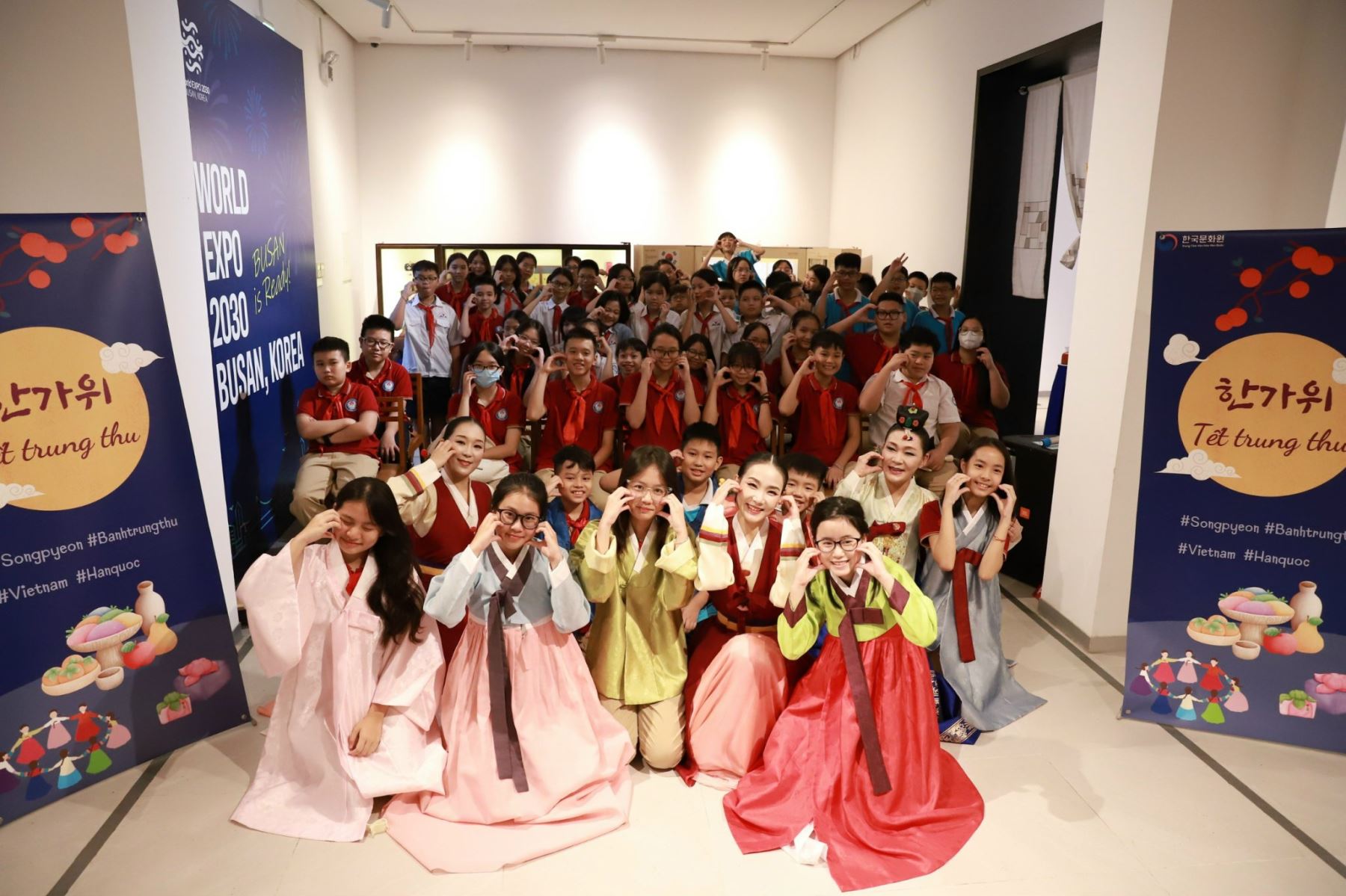 Nhận được thư mời của Trung tâm Văn hóa Hàn Quốc tại Việt Nam thông qua trung tâm GSG – Đơn vị thực hiện giảng dạy môn tiếng Hàn tại trường THCS Ngọc Lâm, buổi chiều ngày 27/9/2023, học sinh trường THCS Ngọc Lâm vui mừng tham gia ngày hội văn hóa Hàn Quốc với tên chương trình “Xem biểu diễn nghệ thuật và trải nghiệm làm bánh Songpyeon nhân dịp Tết trung thu” tại khuôn viên của Trung tâm Văn hóa Hàn Quốc. Đây là chương trình trải nghiệm văn hóa có ý nghĩa thiết thực với mong muốn quảng bá những nét văn hóa đặc sắc của Hàn Quốc.