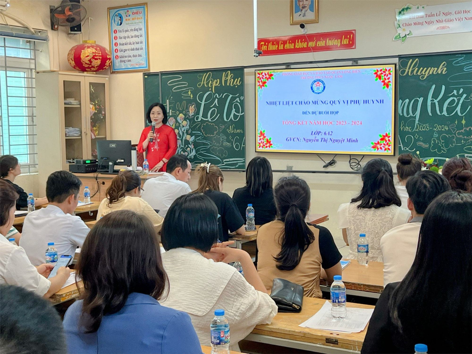 Trong buổi họp, GVCN triển khai tới CMHS về phương hướng của nhà trường từ nay đến kết thúc năm học. Nhà trường tiếp tục tập trung bồi dưỡng cho HSG khối 8 chuẩn bị dự thi cấp Quận. Tiếp tục ôn tập cho HS khối 9 thi vào THPT. Sang năm học 2023-2024, trường THCS Ngọc Lâm tiếp tục duy trì và phát huy thành tích đã đạt được. Duy trì và phát huy kết quả: Mũi nhọn, đại trà, đầu ra cho học sinh. Nhà trường bàn giao HS về sinh hoạt hè tại địa phương, tổ chức một số CLB tại trường. Trong thời gian nghỉ hè, học sinh tự học, ôn tập kiến thức tại nhà, chuẩn bị sách vở cho năm học mới.