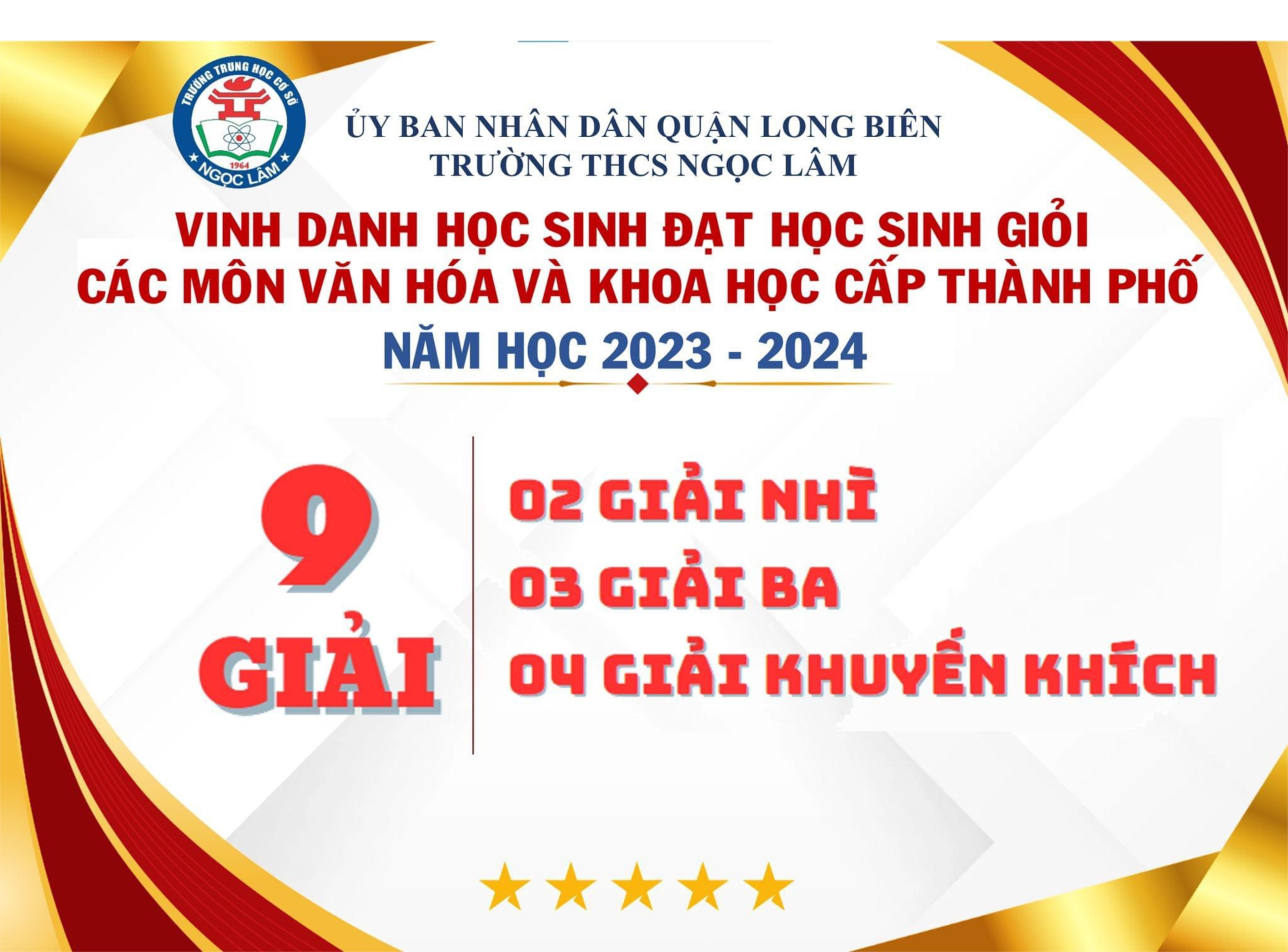 Trường THCS Ngọc Lâm thật tự hào khi có những học sinh như các em. Đây là một thành tích tuyệt vời mà các em đã đóng góp vào bảng thành tích chung của nhà trường. Thành tích của các em là một minh chứng cho sự cố gắng và nỗ lực không ngừng trong việc học tập. Điều này cũng đã khẳng định chất lượng giáo dục của nhà trường ngày càng được nâng cao và phát triển. Nhà trường xin gửi lời chúc mừng đến các em và gia đình các em. Chúc các em sẽ bay cao, bay xa và tiếp tục đạt được những thành tích cao hơn nữa trong học tập.