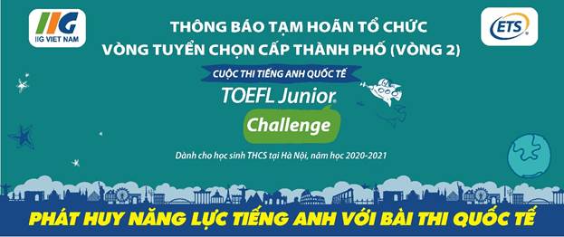 Tổ chức Giáo dục IIG Việt Nam – Ban Tổ chức (BTC) Cuộc thi tiếng Anh quốc tế TOEFL Junior Challenge năm học 2020 - 2021 trân trọng cảm ơn Quý Trường đã quan tâm và ủng hộ cuộc thi.