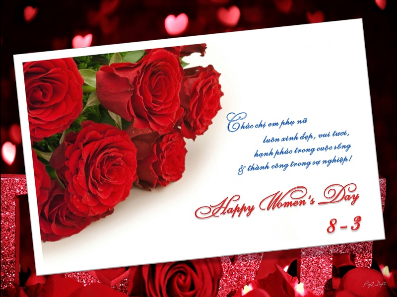 Ngày 8 tháng 3 không chỉ là ngày vui của phụ nữ nói riêng mà còn là ngày vui của các nam giới để họ bày tỏ tình cảm yêu thương với người bà , người mẹ, người vợ và người bạn gái của mình. Xin dâng tặng tất cả tình yêu và sự ngưỡng mộ tới những người mẹ, người chị đã góp phần không nhỏ trong cuộc đấu tranh và xây dựng đất nước. Cảm ơn những người phụ nữ đã làm cho một nửa còn lại của cuộc sống đẹp hơn, tươi hơn và hạnh phúc hơn.