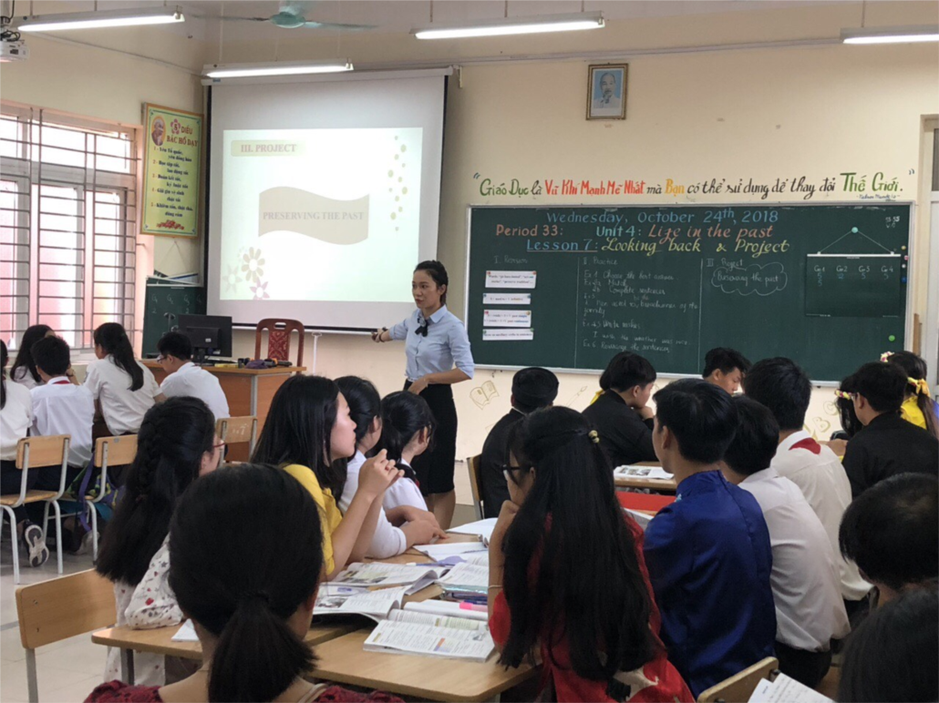 Là một giáo viên trẻ và năng động, cô giáo Hoàng Mai Dung đã áp dụng những phương pháp dạy học mới, năng động và thú vị trong tiết dạy, với mục tiêu vừa tạo không khí sôi nổi, hào hứng cho các con lớp 9 trong bộ môn Tiếng Anh, vừa phải đem lại kiến thức vững chắc cho các con chuẩn bị tốt nhất trong kì thi THPT sắp tới. Là một tiết ôn tập, nhưng các con được tham gia vào nhiều hoạt động, trò chơi khác nhau, với đa dạng hình thức như hoạt động cá nhân, hoạt động theo cặp và hoạt động theo nhóm. Các con học sinh cũng rất tài năng với những hoạt động chuẩn bị bài kĩ càng, thú vị.