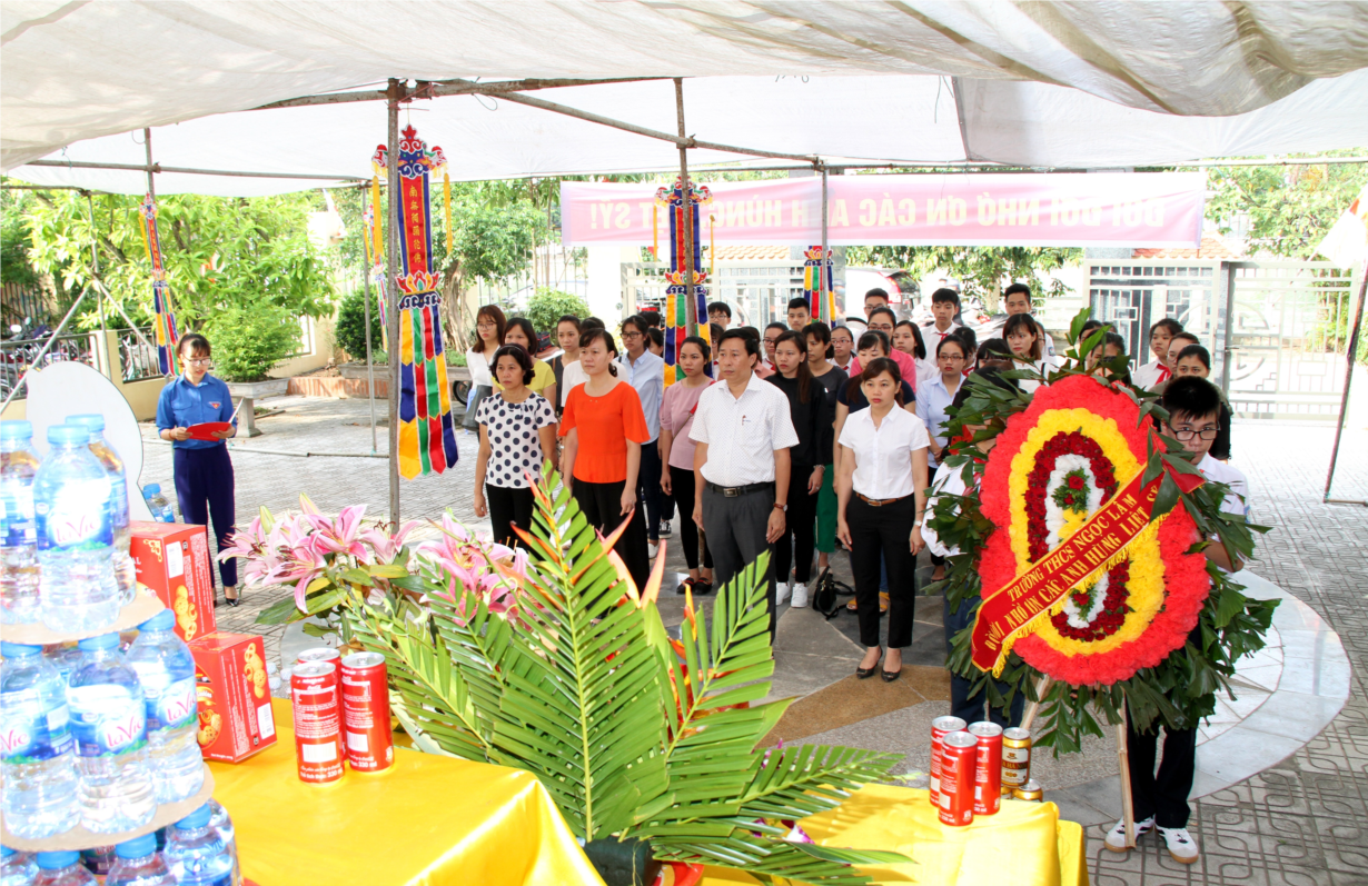 Tại buổi lễ, cán bộ, giáo viên, học sinh nhà trường đã đặt vòng hoa, dâng hương tưởng niệm các anh hùng, liệt sỹ. Trong không khí trang nghiêm của buổi lễ, các thành viên trong đoàn đã kính cẩn nghiêng mình tưởng niệm và tri ân trước anh linh các anh hùng, liệt sỹ. Cảm giác thật lạ lùng khi chúng tôi cầm trên tay những nén hương, những bông hoa đến đặt lên từng bia mộ, dưới ánh sáng của nến lung linh, cảm động. Từng ngọn nến, nén hương thơm được thắp lên phần mộ của các anh hùng, liệt sỹ để tỏ lòng tri ân sâu sắc nhất, sự biết ơn công lao to lớn của những người con dân tộc.