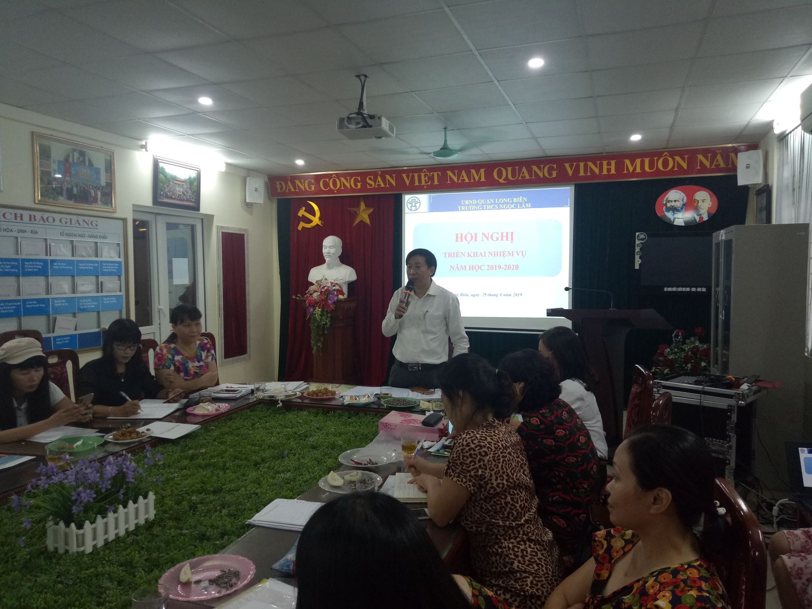 Ngày 29/8, trường THCS Ngọc Lâm đã tổ chức hội nghị triển khai nhiệm vụ năm học 2019-2020. với toàn thể cán bộ, giáo viên, nhân viên trong nhà trường. Hội nghị gồm có 2 phần nội dung: Tổng kết kết quả thực hiện nhiệm vụ năm học 2018-2019 và Triển khai nhiệm vụ năm học mới 2019-2020.