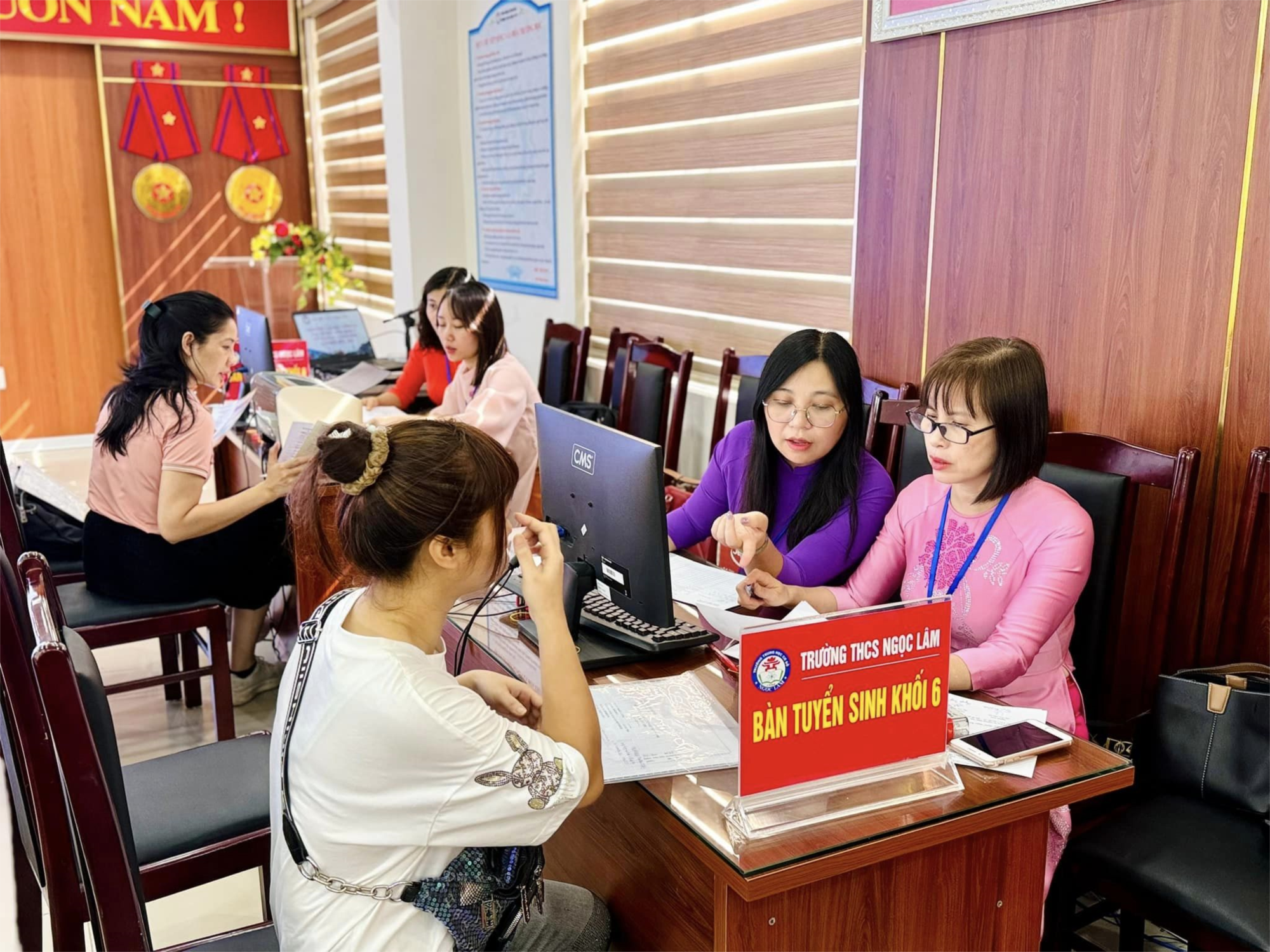 Từ ngày 07/7/2024, nhà trường đã bố trí đầy đủ các điều kiện về cơ sở vật chất, thiết bị để hỗ trợ cho CMHS đến tham dự tuyển sinh một cách tốt nhất.